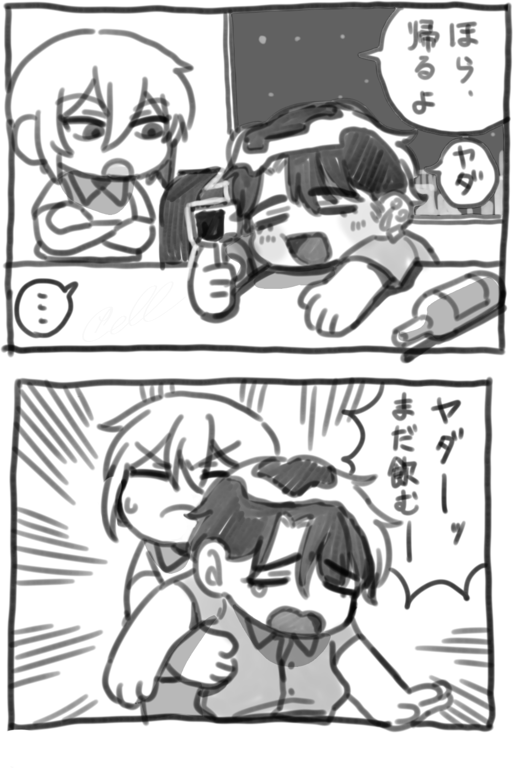 創作,漫画 2025/08/17 Sun ヤダー!! In a Blink, Hope/酒の話 …お酒(特にワインやウイスキー)が大好き。酒好きになったのはアルの影響。アルコールにも強いが、たまに飲み過ぎて二日酔いになっている。酔っ払うと精神年齢が小学生になる。 …お酒は普通、嫌いではないけどカクテル1杯で酔っ払うため、ほとんど飲まない。酔うと社交的になりすぎる上に素直になるタイプ。 #希望の観測者