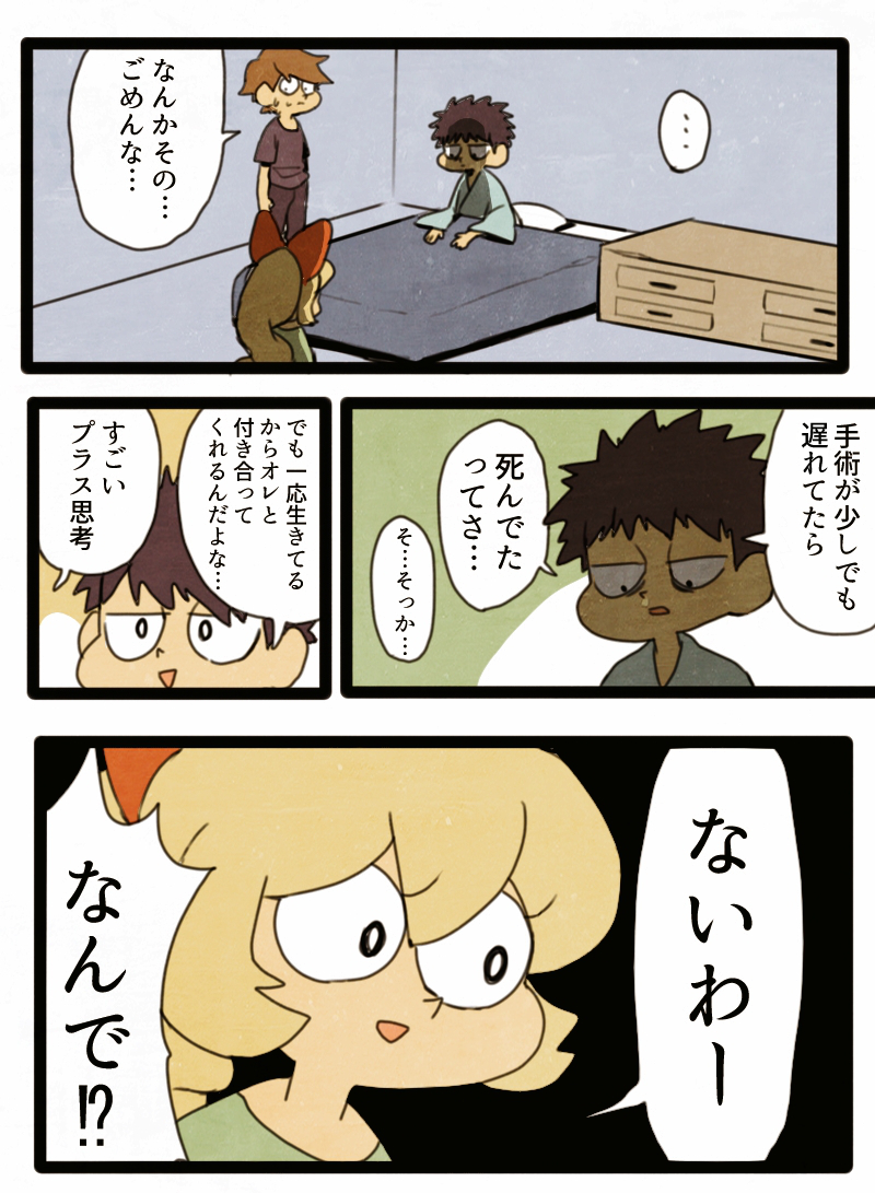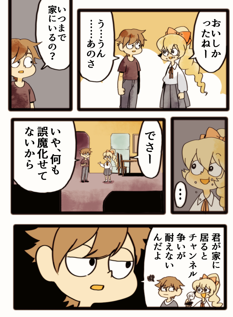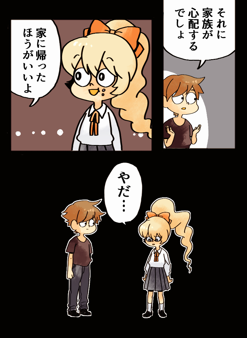 何も考えず最後のコマの絵をを書いてたんだけど、このまま漫画にしようと思って無理やり話を肉付けただけなので個人的に漫画としては結構違和感のあるなと感じる閉じる⇧